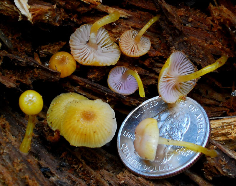This is an exceptionally gorgeous species, which is hard to find sometimes, often fruiting behind the bark of rotting logs.