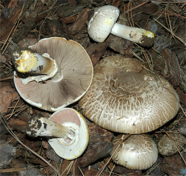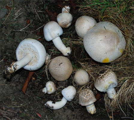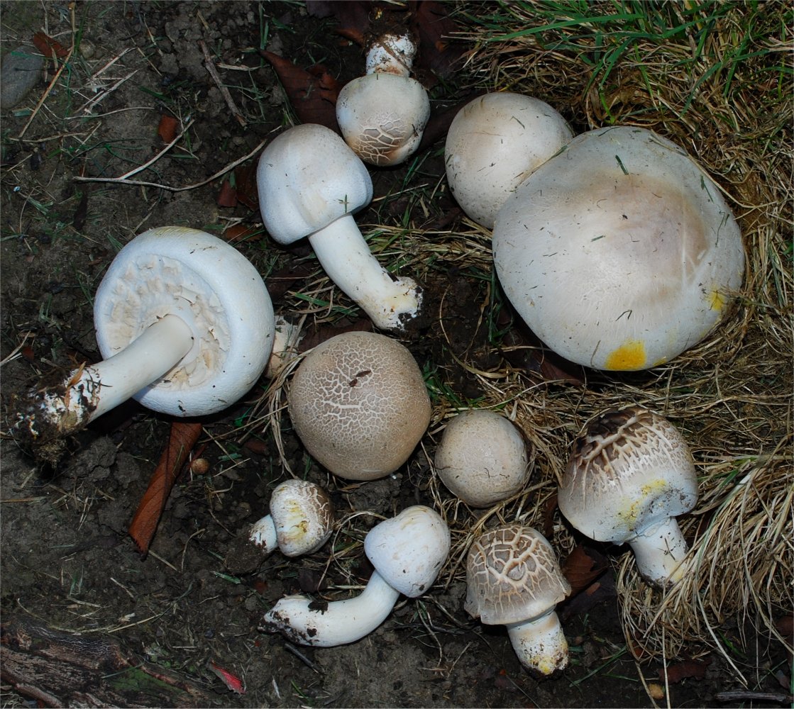 picture shows a mixed collection of Agaricus xanthodermus v.