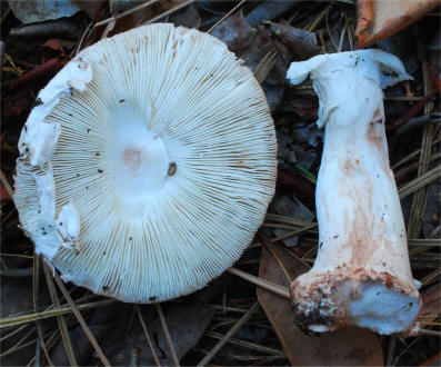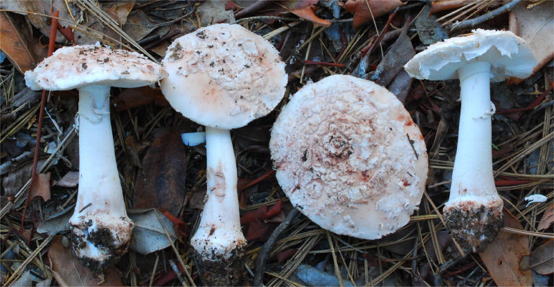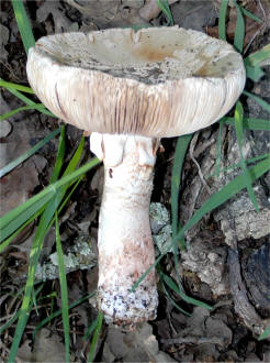 | Amanita novinupta in Calfironia seems to be a complex of 2 or more species. The most common variety fruits in the Spring where it is abundant under Live Oak. There are Fall fruitings in mixed woods that may represent a very similar, but different species. For a long time this species was confused with the European Amanita rubescens, which I personally do not find particularly similar although that they are both in the same Section -- Validae. | ||