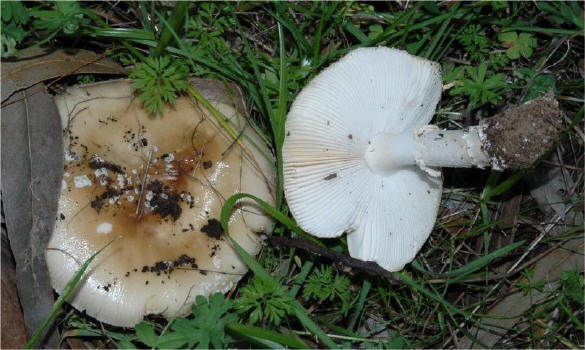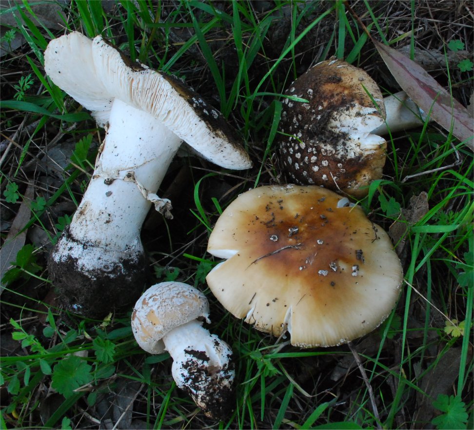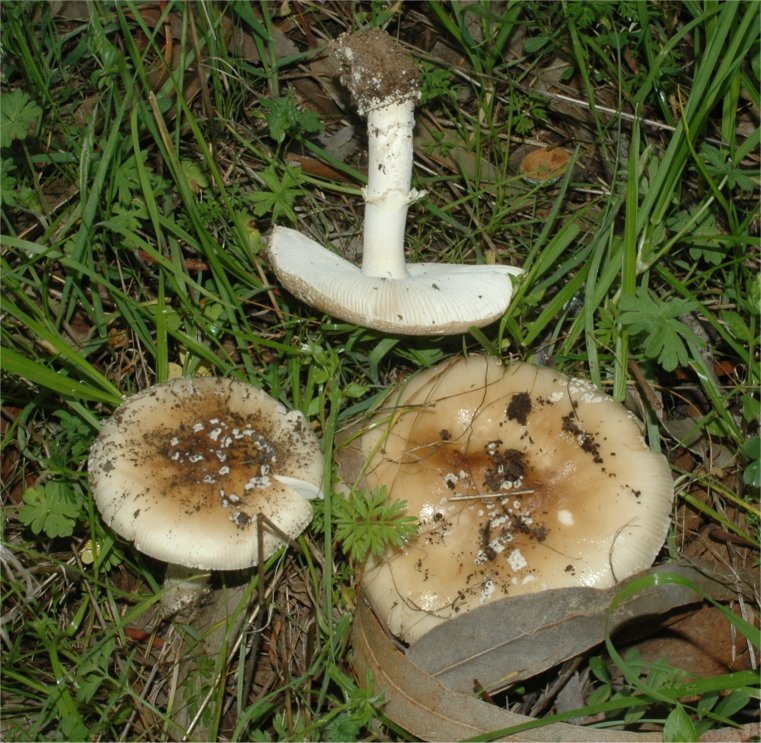 Very common under Eucalyptus globulus near my house. This is an unusual association because the Blue Gum is a recently imported tree in California (100+ years) and not known locally for mycorrhizal associations.