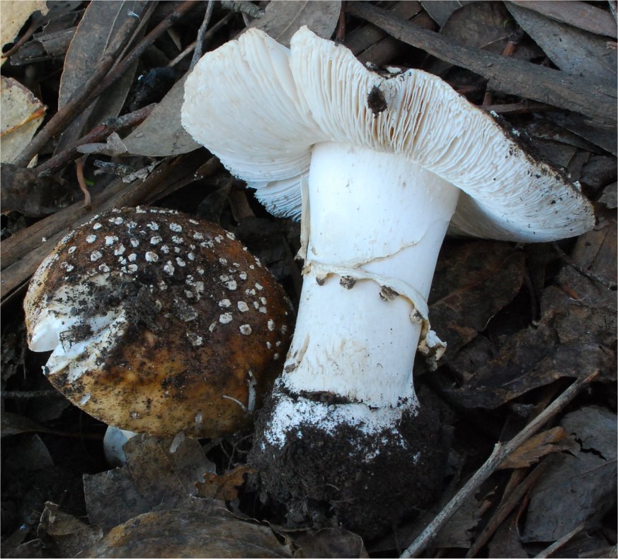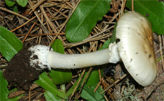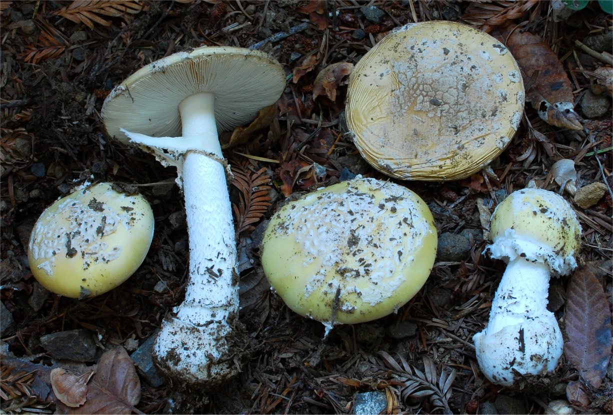 ![]() ![]() Some of the yellow forms of A. pantherina look very much like A. gemmata -- separated on the macroscopic basis of persistent annulus, more robust stature and pricklier veil remnants on the cap. Otherwise microscopically they are very, very similar. |