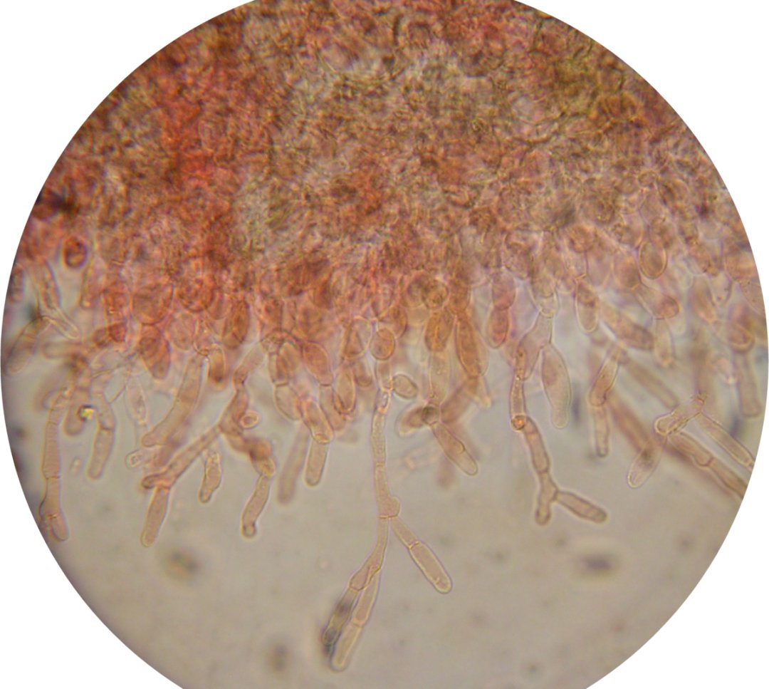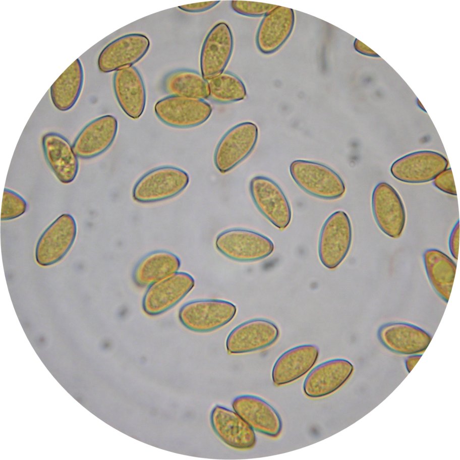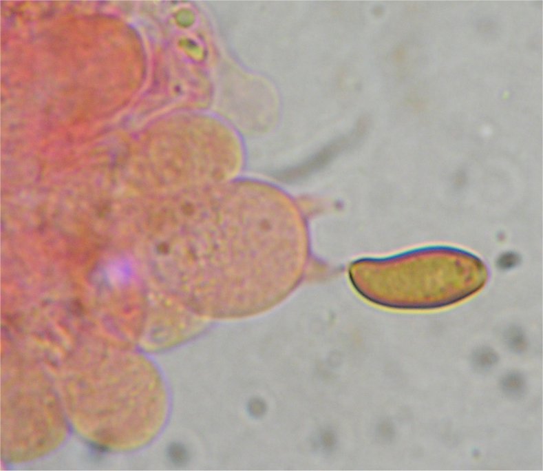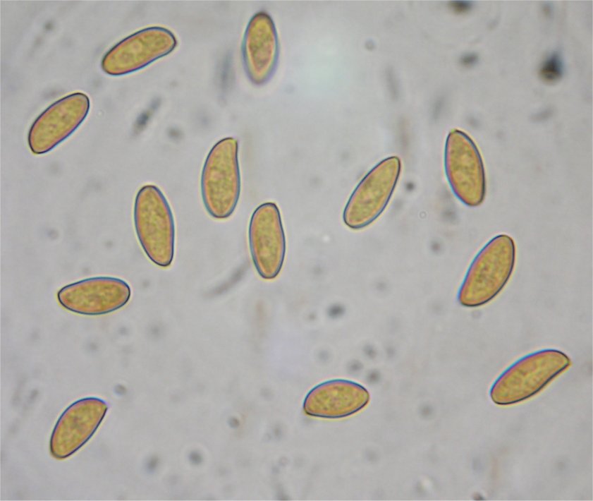 Spores: 8-12 x 4-6μ fairly variable in size.