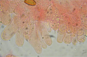 Comments: Bolbitius is probably not the first thought when this lignicolous specie is encountered. It has a great macroscopical resemblance to Pluteus. From there it takes the investigator for a little spin through the brown spored genera until all other options are exhausted. Bolbitius fits naturally by the virtue of its smooth spores with an apical pore (ruling out many other brown spored competitors); viscid pilleus (ruling out Psathyrella); palisadoderm (ruling out Agrocybe and Pholiota).
