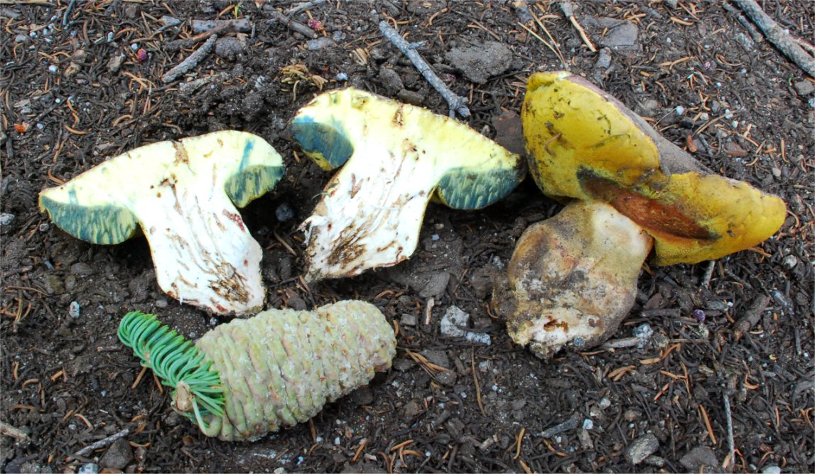 magnifica), thus the name, but I have noticed fruitings squarely under pine. Other