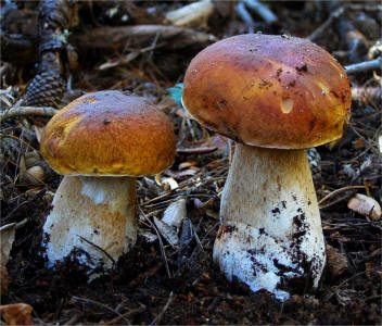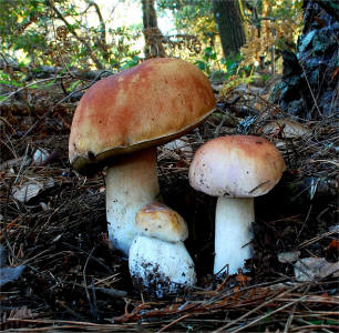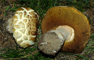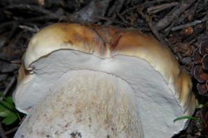 | This is the variety of Boletus edulis found in the Western United States. It stands out with its large size and the tendency of the pores to turn reddish with age. The same tendency has been observed in collections from coastal California, Sierra Nevada and Idaho. Some of the most exciting fruitings occur in Sierra Nevada in August when in the rest of California it is a scorching heat -- The Sound of Running Water. | |||