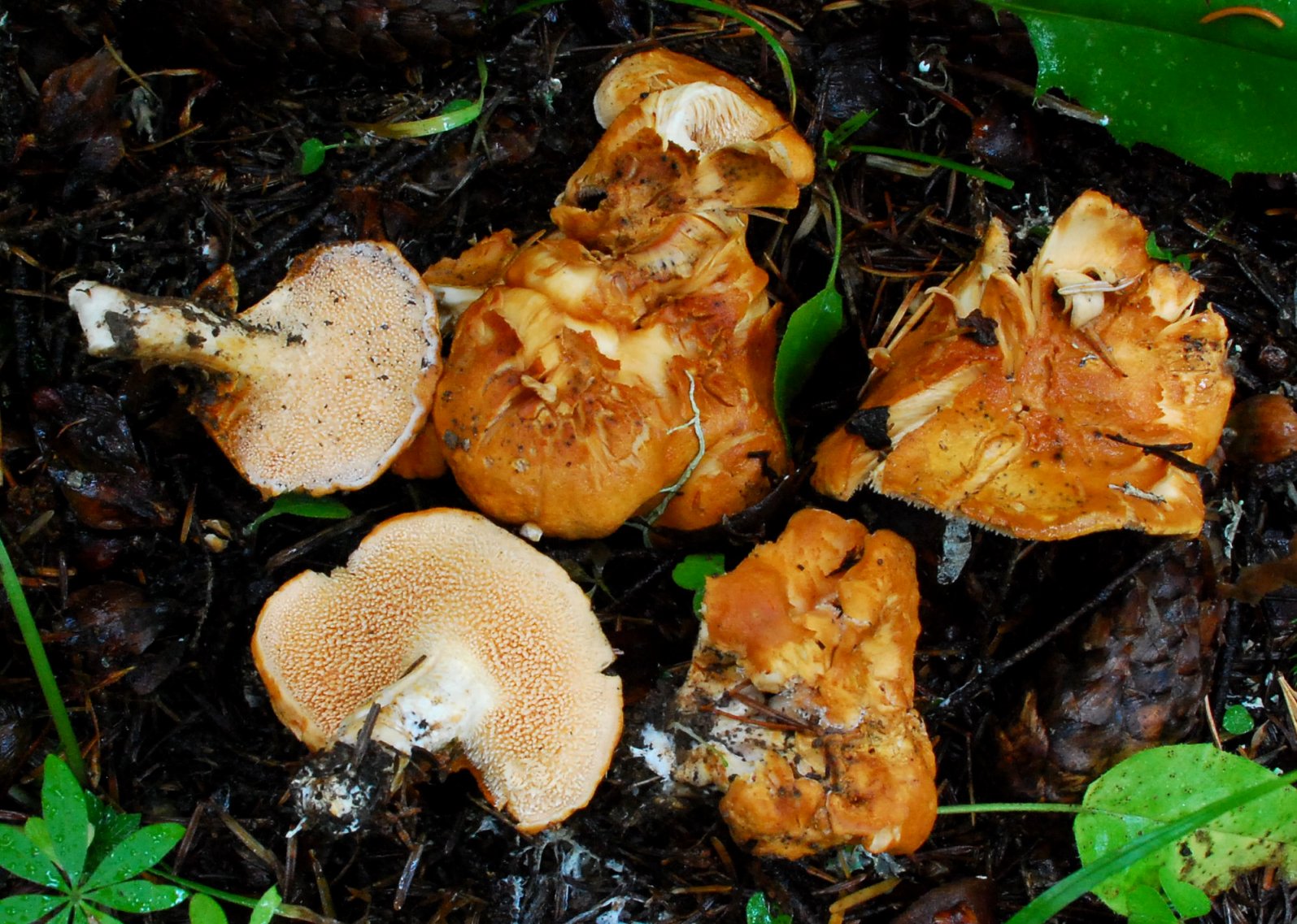 This darker capped European variety/species has been synonymized back into Hydnum repandum. I list it  here only because it is commonly featured in field guides and on the Internet.