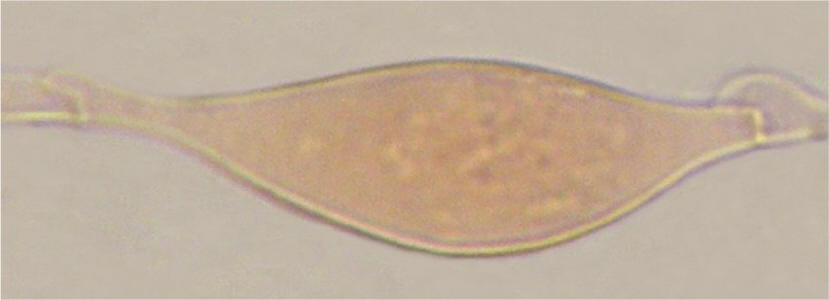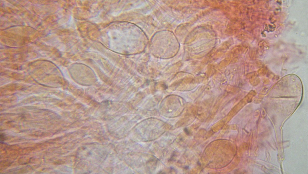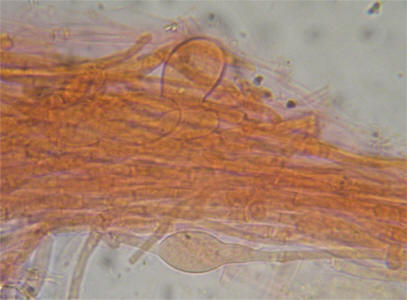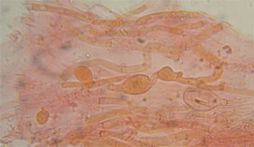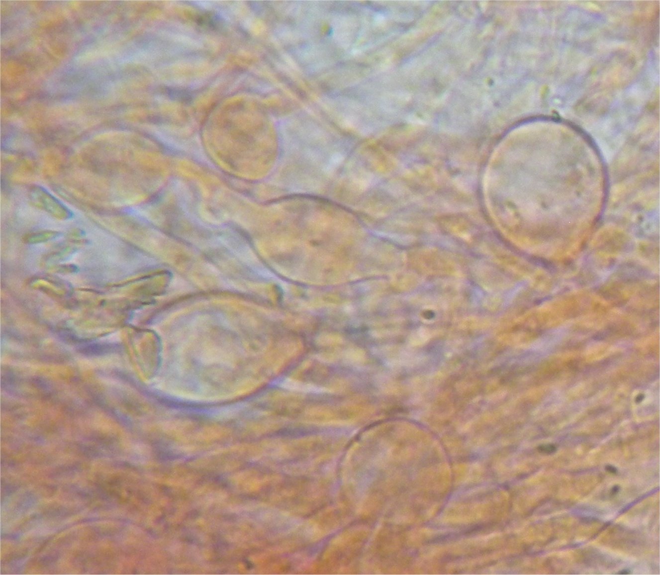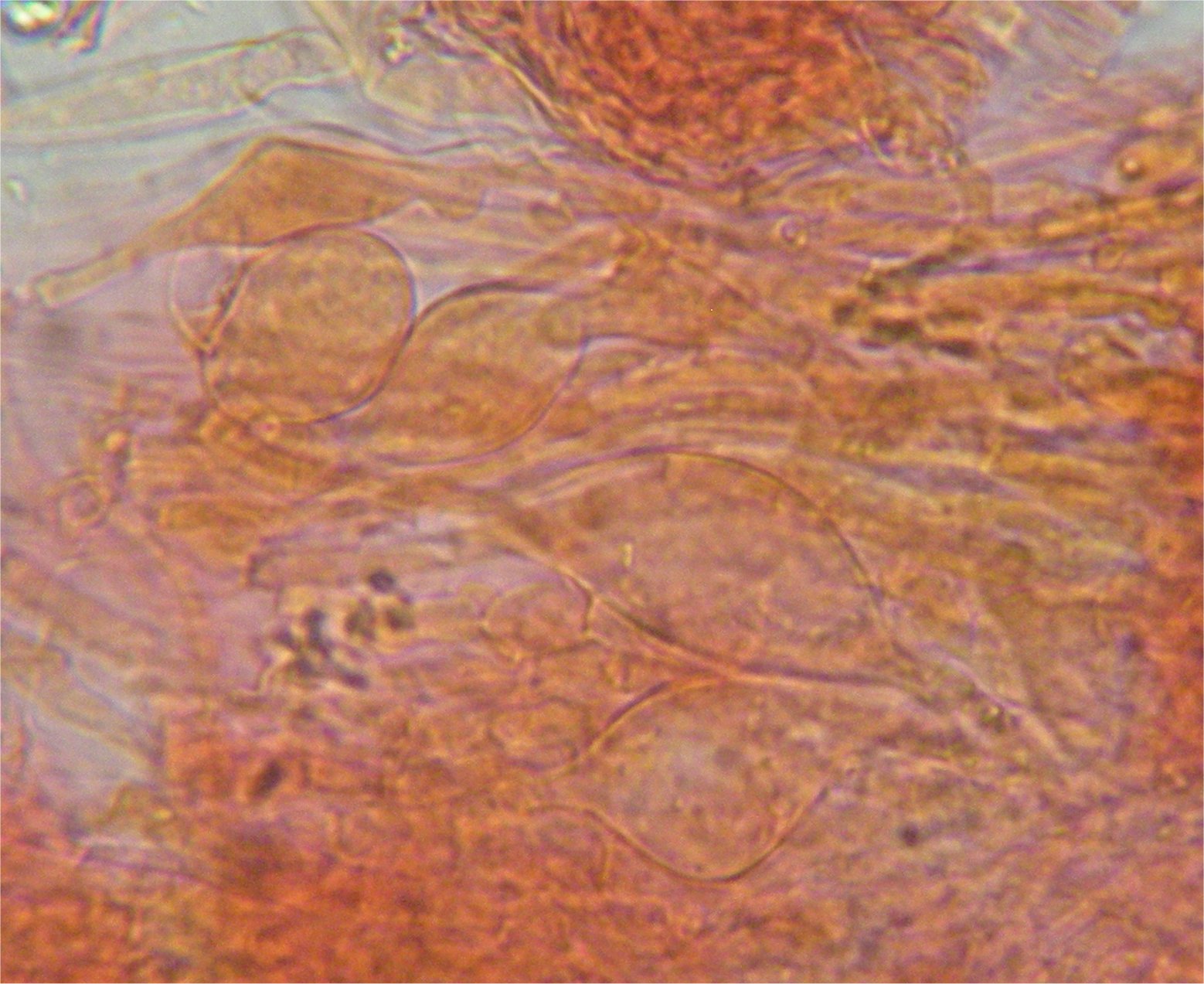 | This is a fairly non-descript Clitocybe with one strongly distinguishing characteristic -- the vesiculose hyphae in the pileus trama. |