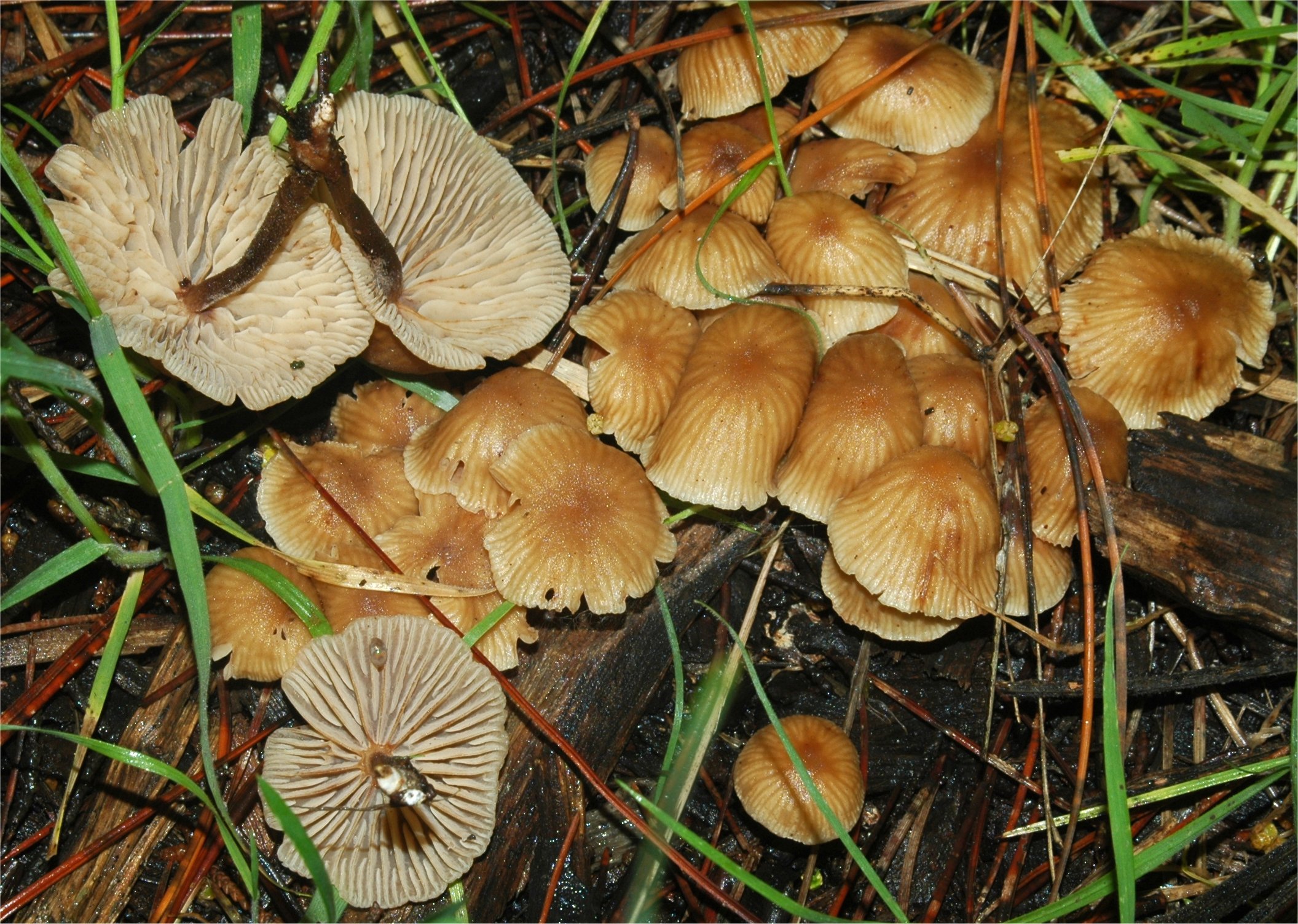 This species seems to have a rather Southern distribution. It was described recently from Hawaii too. It appears in Parks in the East Bay on rotting stumps or buried wood.