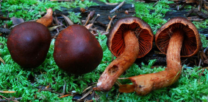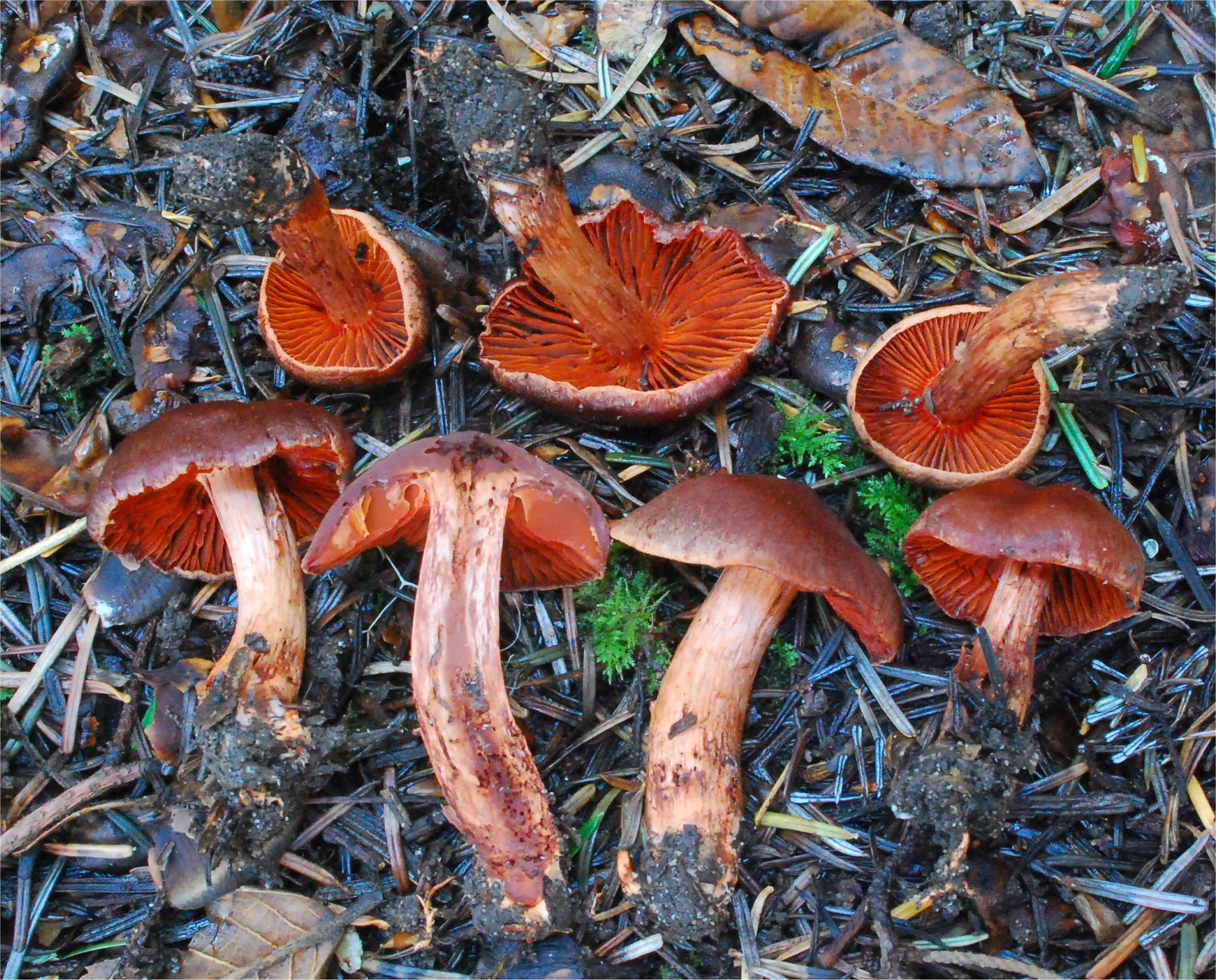 Cortinarius sanguineus, but the latter one has much more saturated red