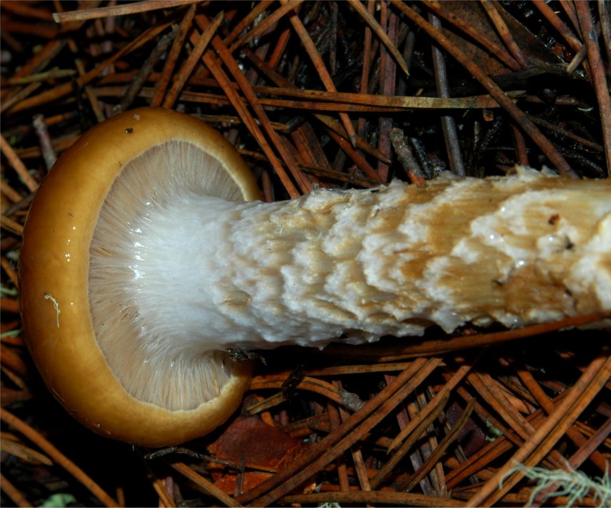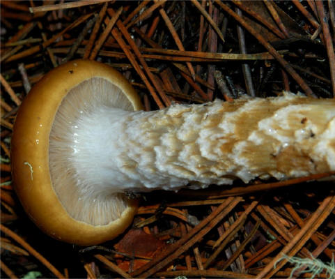 on the stem/gills is a variable characteristic. The strong tendency of the stipe to develop girdles (like