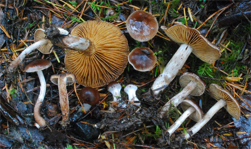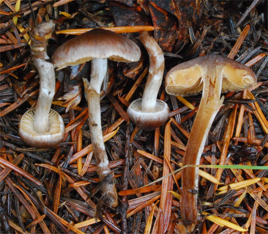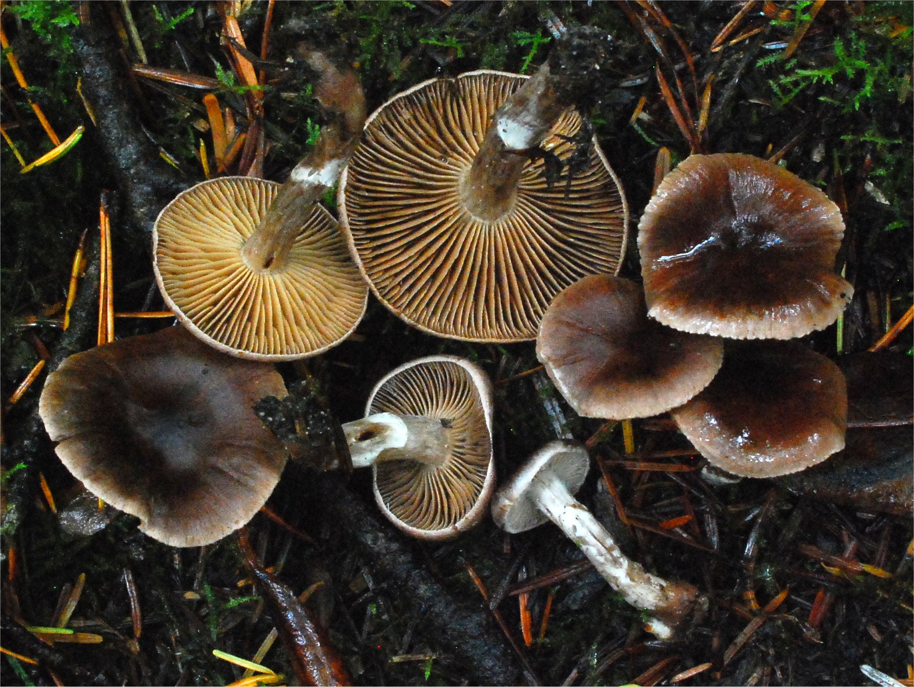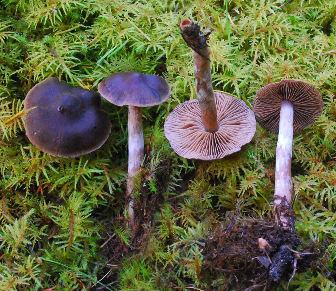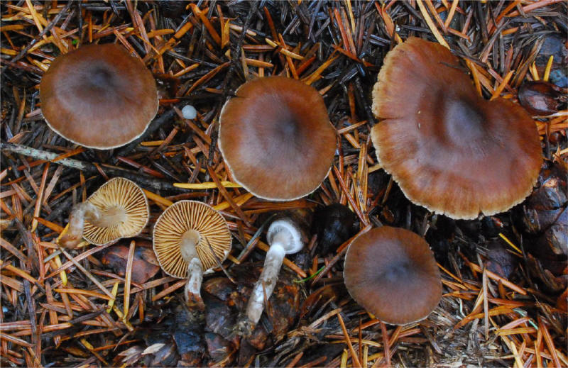 darker, sub-acute umbo and contrasting paler ochraceous gills set it