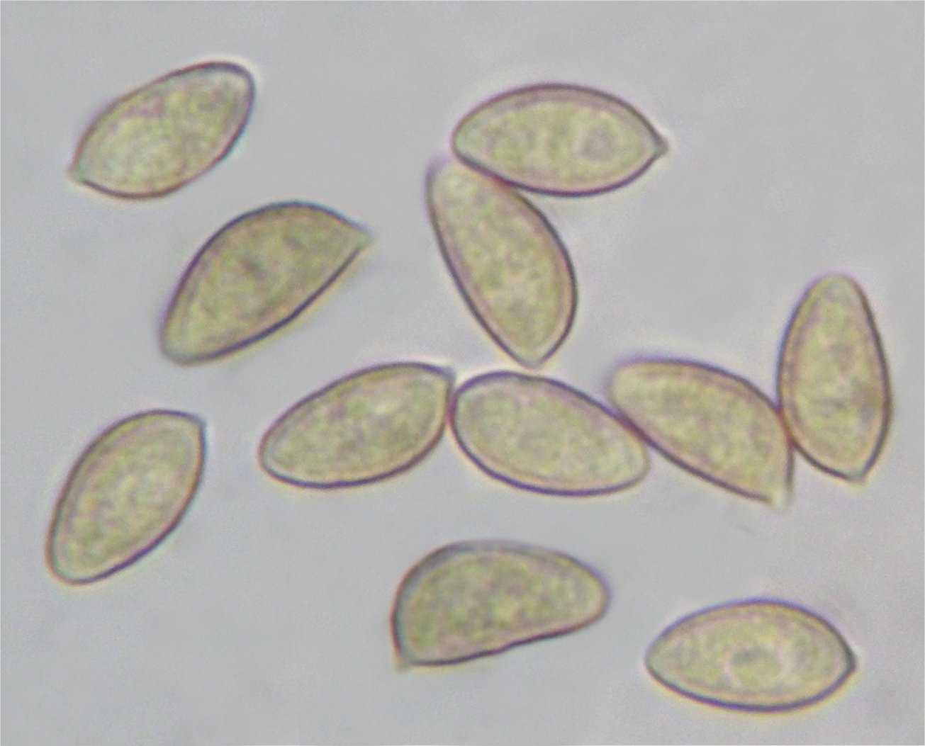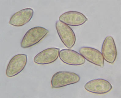 much longer spores, which are more amygdaloid in shape. Both species have a