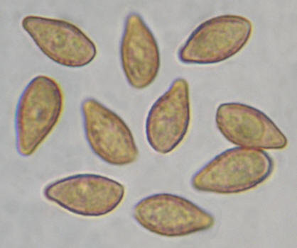 | This rare Phlegmacium appears in coastal woods from Mendocino to Santa Cruz. It can easily be confused for the bluer forms of C. glaucopus, but they are not closely related. This species has the distinctly small, citriform spores seen in members of its remote clade and other Western American Phlegmacia, which do not seem to have close European siblings. | ||