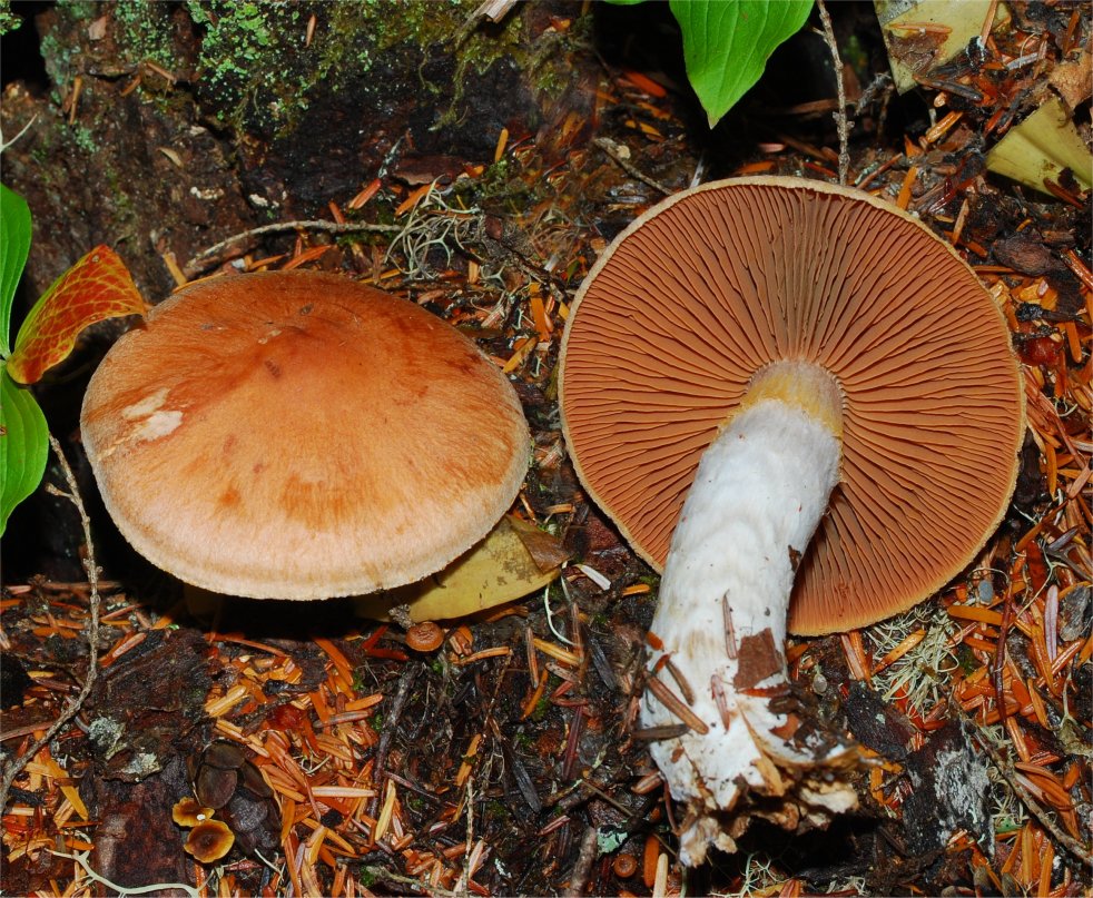 was originally described from the conifer forests in Sweden. First recorded from North America by Kauffman and A.H. Smith. Cortinarius bivelus