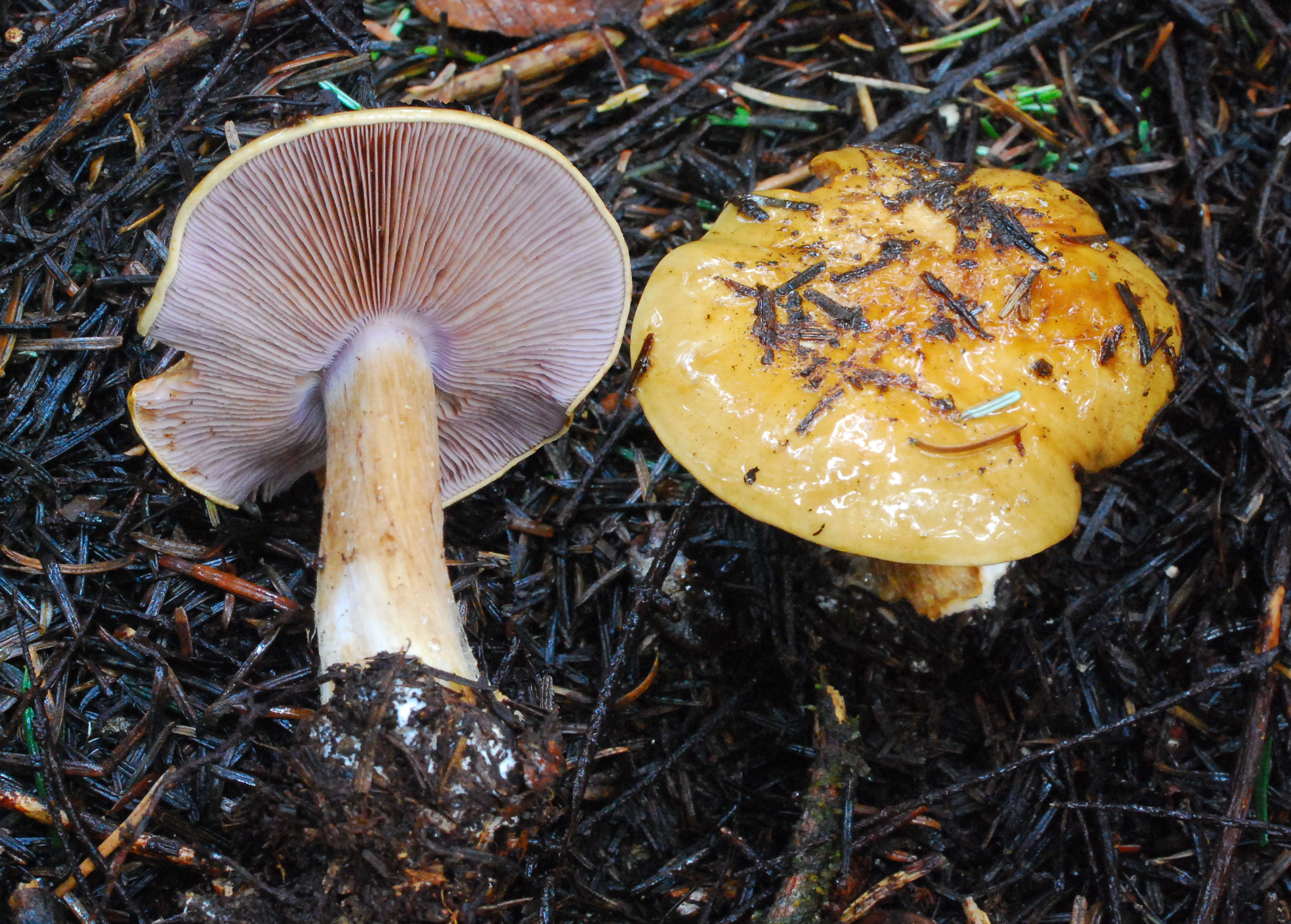 | Cortinarius largentii is a typical member of the Calochroid super-clade. This particular species bears great resemblance to the classical Cortinarius calochrous, but in fact genetically it is closely related to Cortinarius corrosus. This species is common in coastal Northern California (Mendocino and Humboldt counties), but I have not seen it outside of that area and also no collections are reported from Washington or British Columbia. | ||