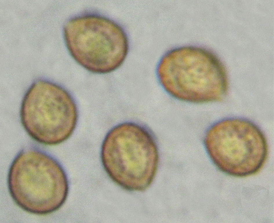 Spores: 7-8.5 (9.5) x 6-7µ