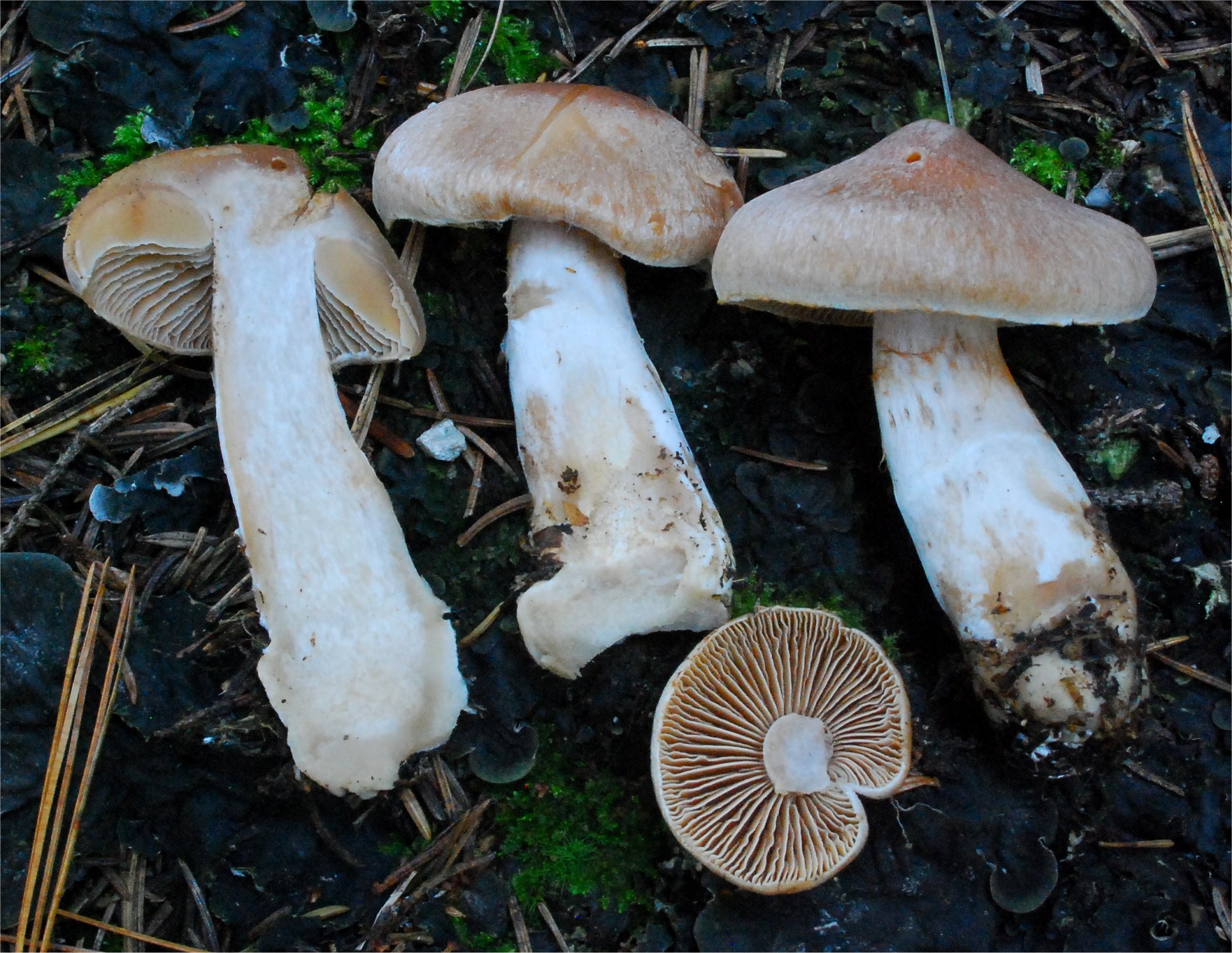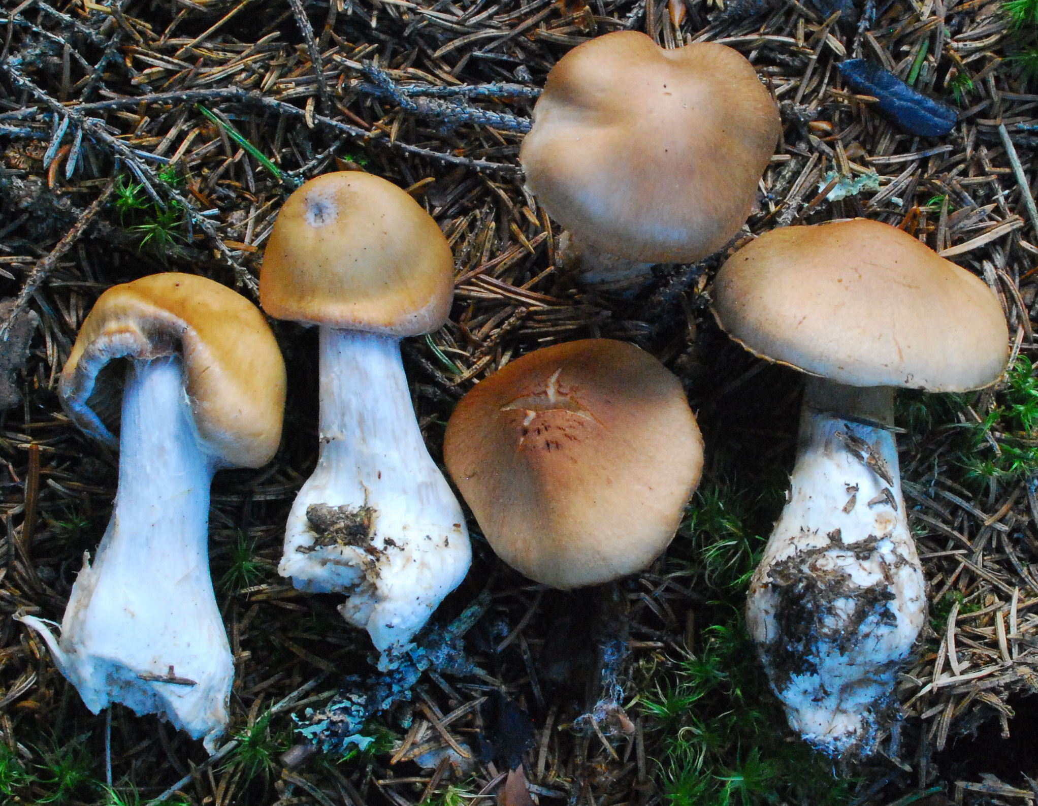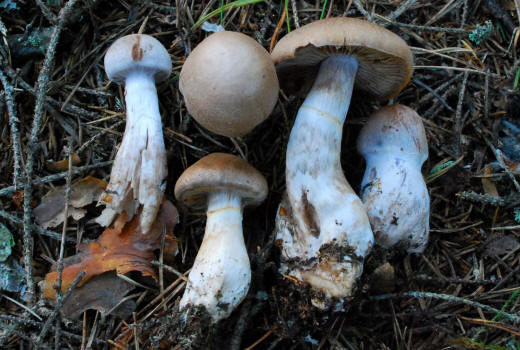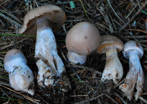 features of the species in this group is the thin white veil covering of