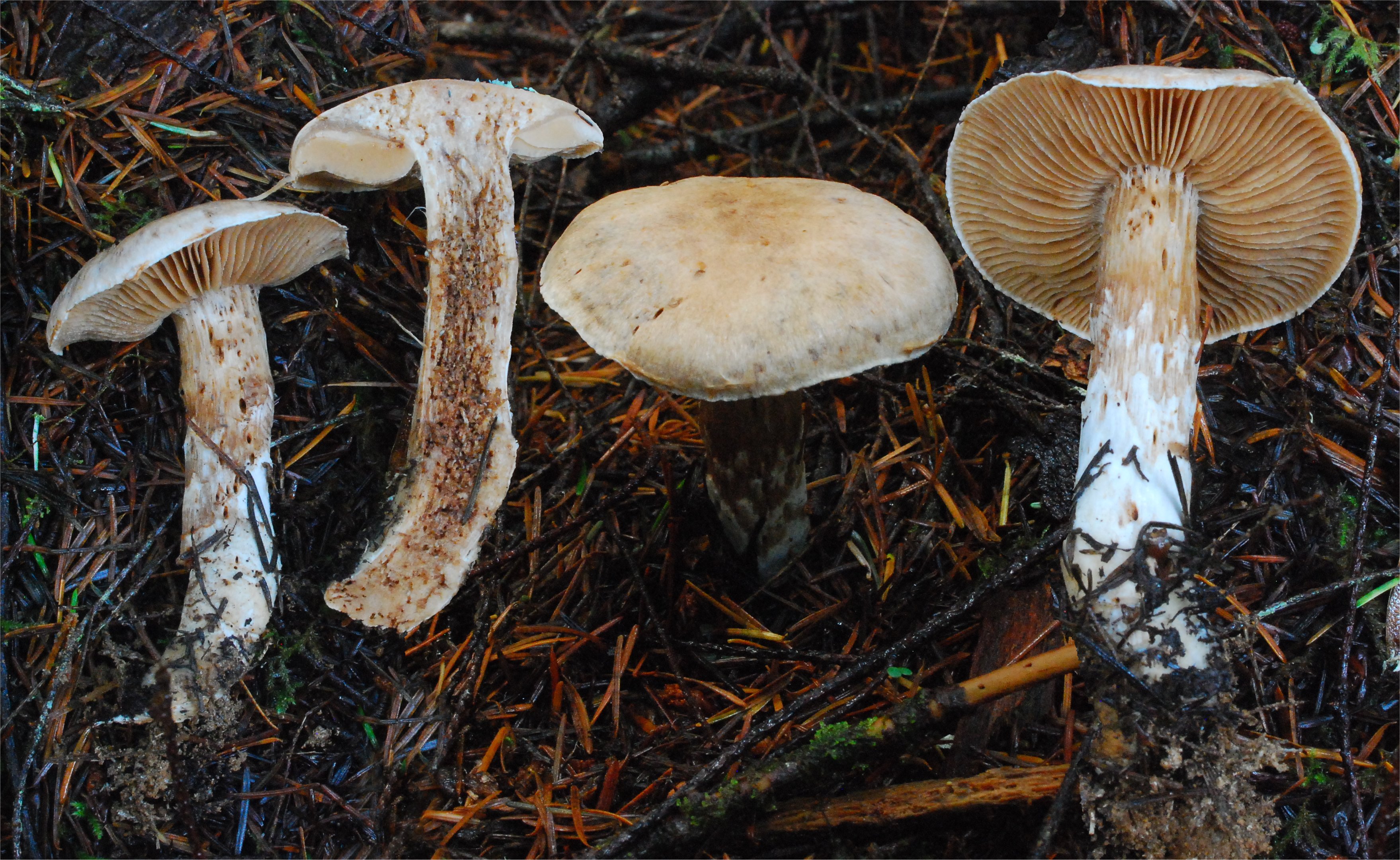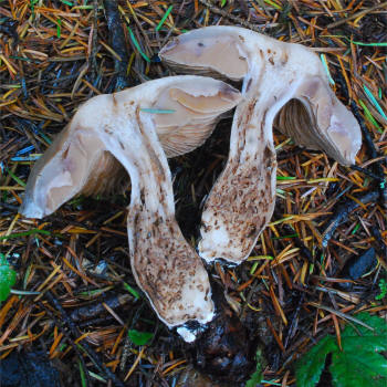 | This peculiar Cort reminds one strongly of a colorless Cortinarius traganus form as it shares the same strong and fruity odor. This species is fairly common the Pacific Northwest under spruce or other conifers, but appears rarely in Northern Calfironia. The molecular data form western North Maerica is very close to the European species. | ||