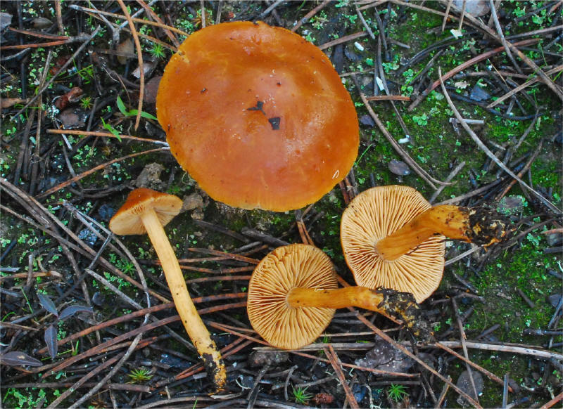 This small orangish Cort is one of the most unusual in the Genus -- it lacks veil! In the past its position within Genus