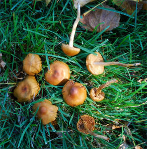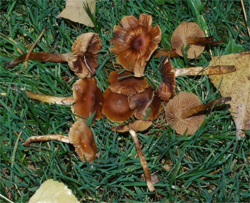 it can fruit in vast numbers, up to of several hundred fruitbodies in