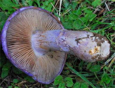 pinkish lilac color, a distinctive sock on the stipe and a strong odor that