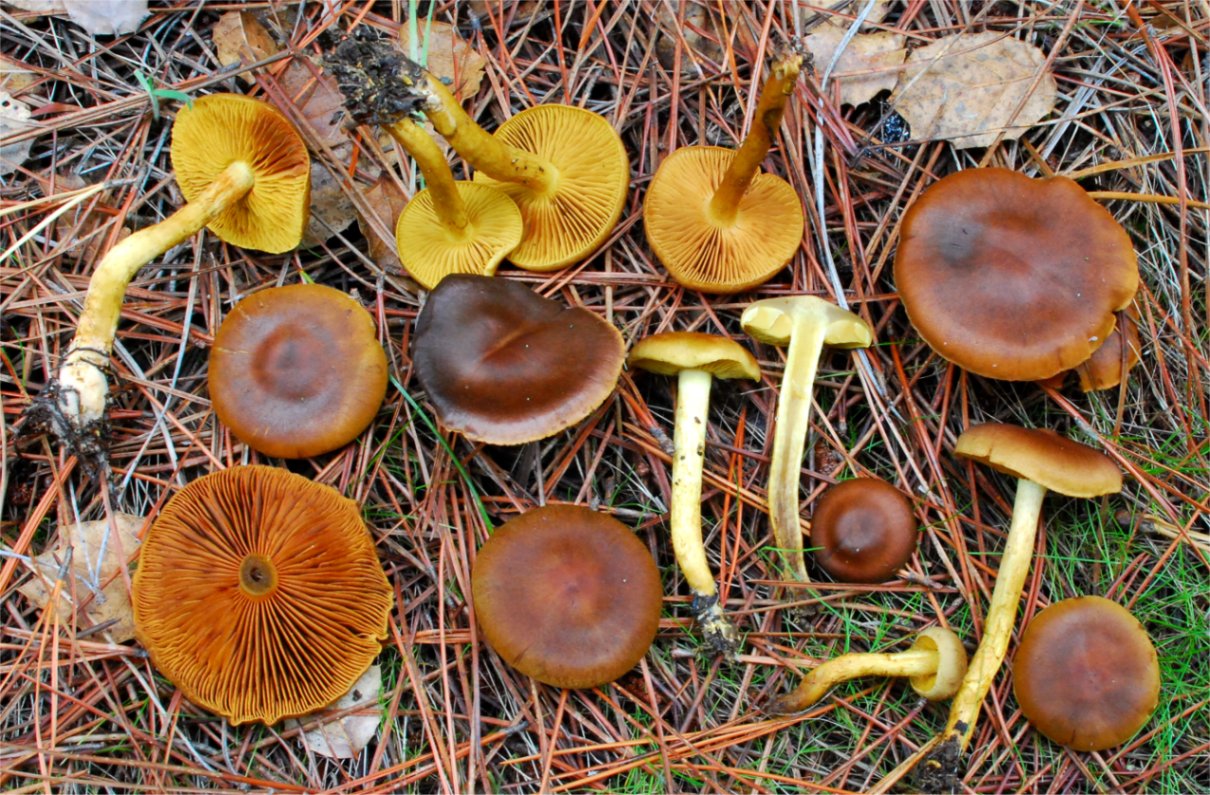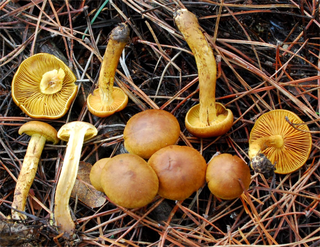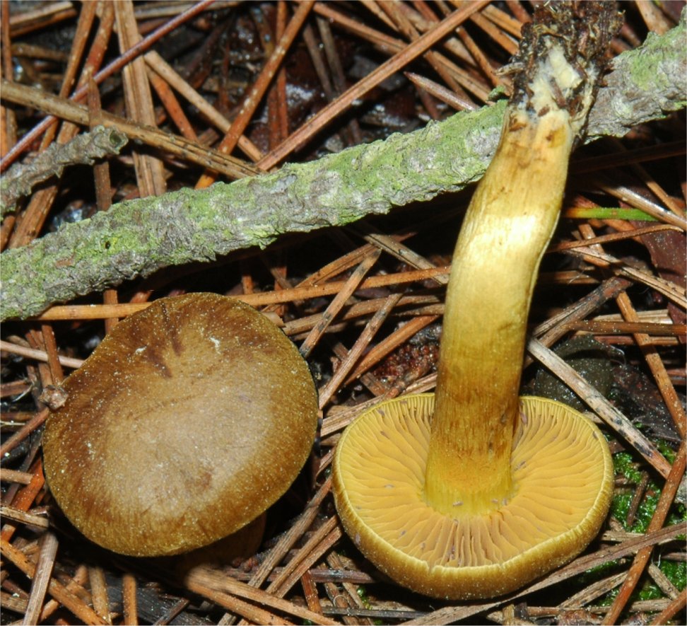 we call Cortinarius croceus in the fall is actually the same species. Genetically, it is in the