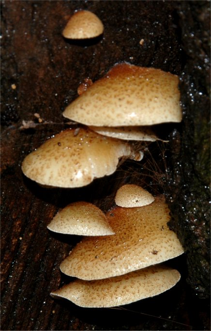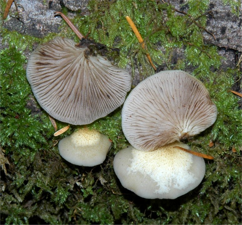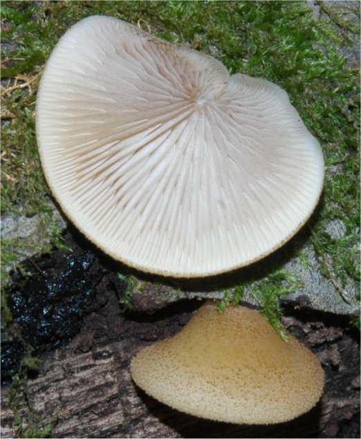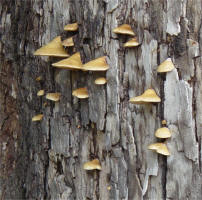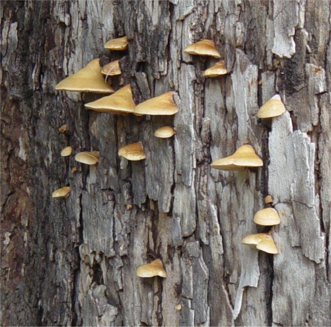 Crepidotus mollis (California) Seen on Oak. It is also particularly common on the bark of Eucalyptus globulus (Blue Gum tree)