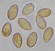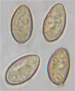 Spores: (8.3) 9 - 10 (10.8) x 5.1-6µ
