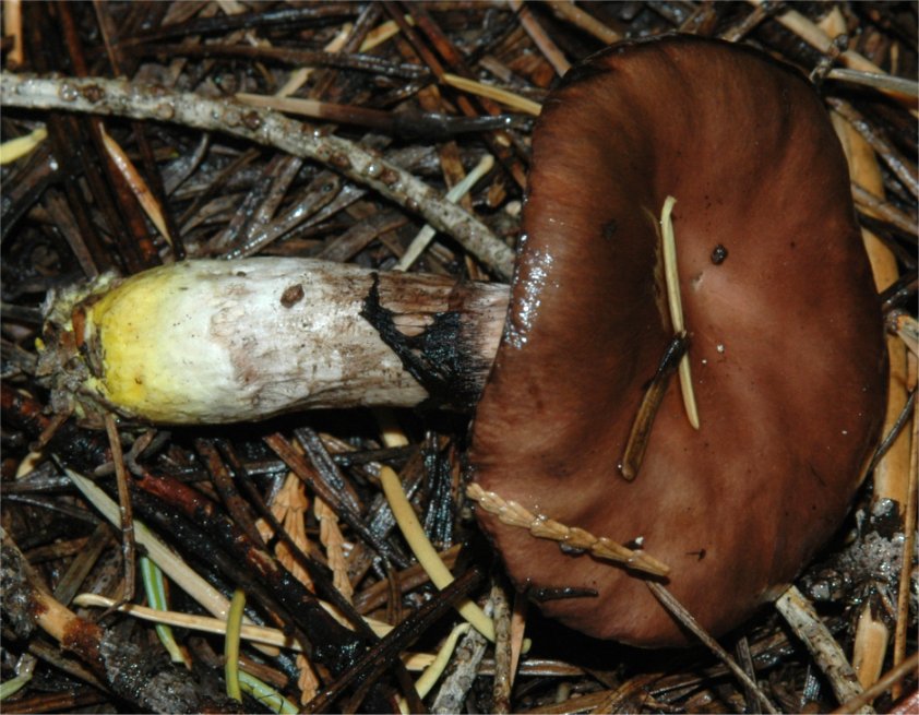 | This is a classic Gomphidius species from the Northern Hemisphere. Its colors are quite variable and change with age too. |