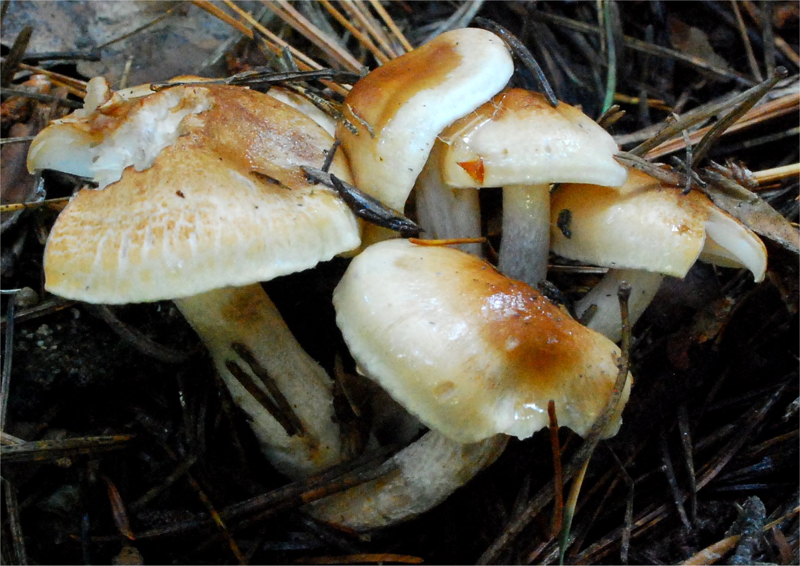 Hygrophorus discoideus is one of the classic European taxa from conifer forests. There is a similarly named species in California Hygrophorus discoideus var. californicus, which fruits strictly in the higher elevations of Sierra Nevada.