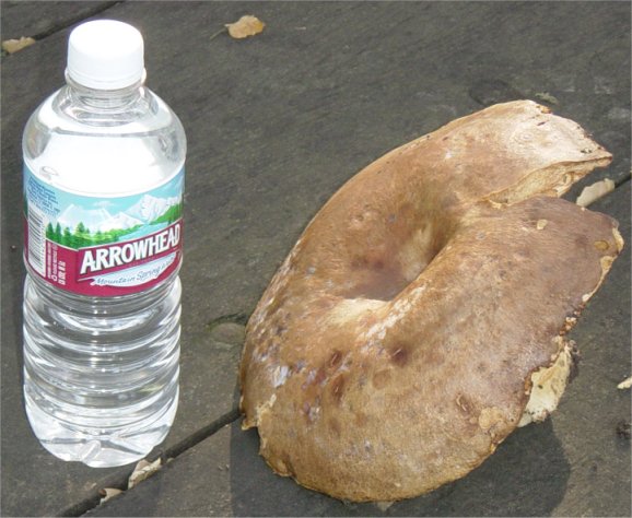 its size. The gills bruise brownish and the entire fruitbody discolors into