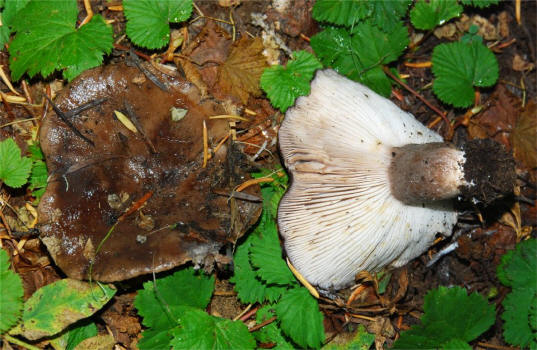 distinct, the milk is white but stains the gills brownish over time.