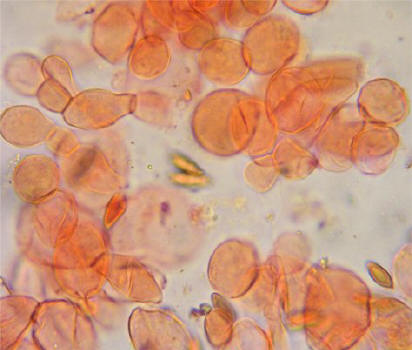 This species is easily distinguished microscopically due to the round