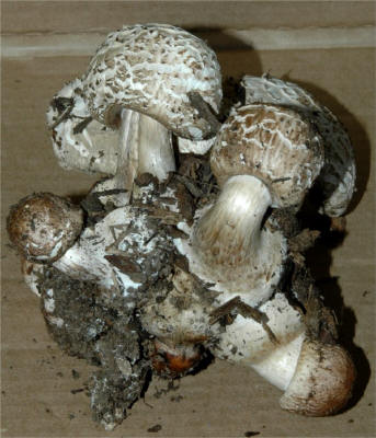 interesting caespitose habit showing fruitbodies shooting in all directions,