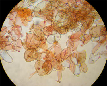 forming dense clusters along the gill edge. Avg. size is 20-30 x 6-8µ.