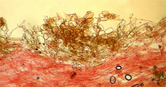 : composed of cylindrical to subglobose cells, some clamped.