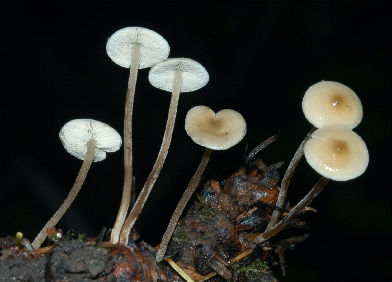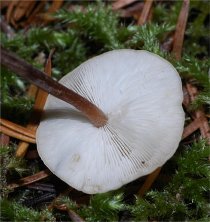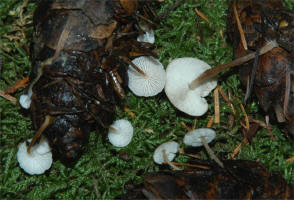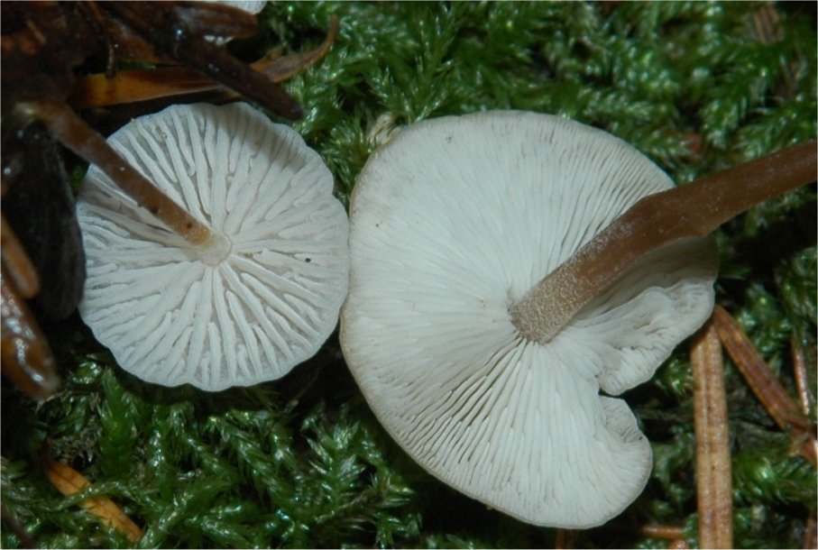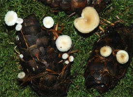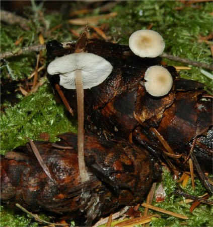 ![]() ![]() ![]() Strobilurus trullisatus (left) vs. Baeospora myosura (right) -- Baeospora has crowded gills and somewhat darker pileus... |