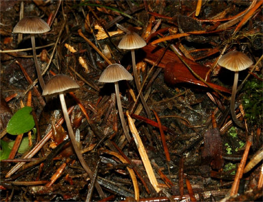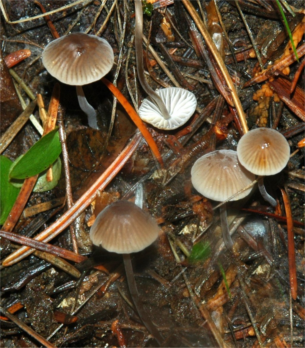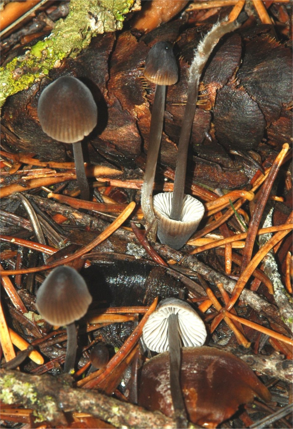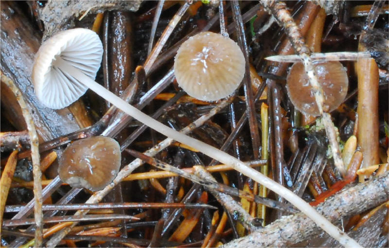 on conifer debris in the Sierra Nevada foothills -- it tends to start really dark brown and pale out as the fruitbodies mature. The stipe undergoes the same color change too.