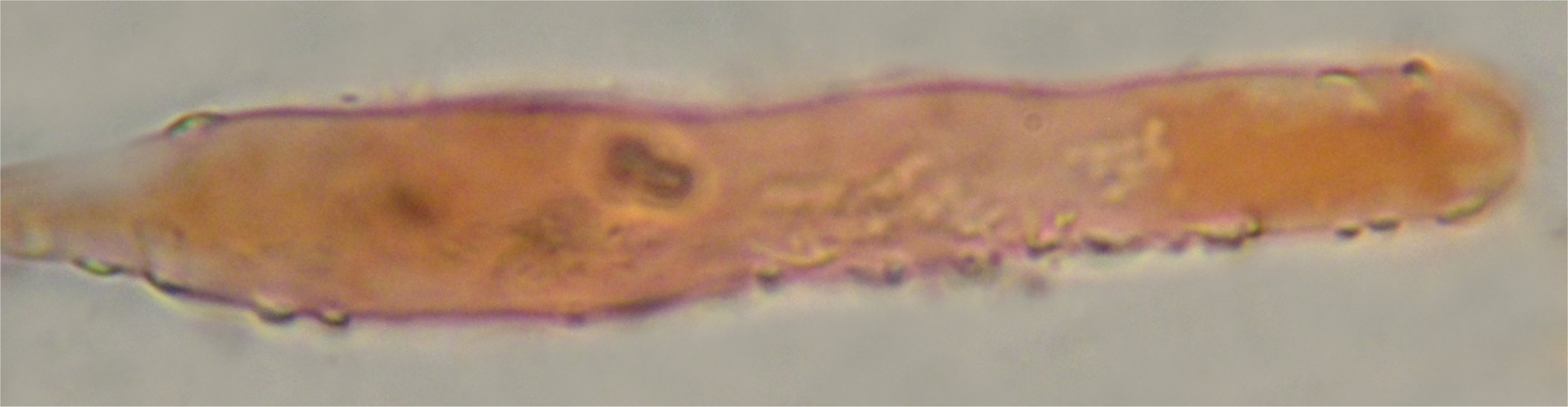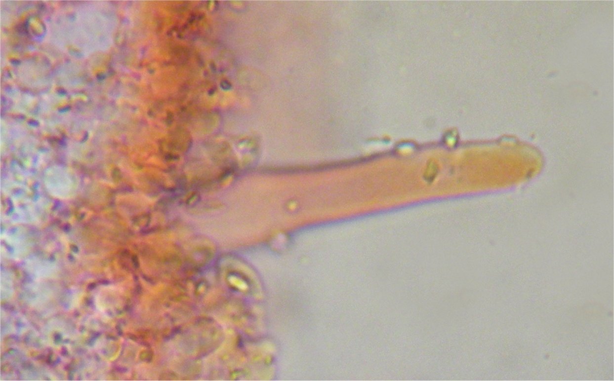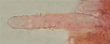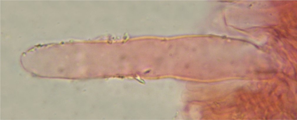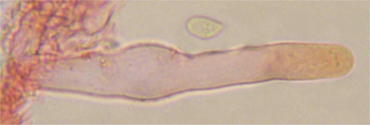 Long cheilocystidia, occasionally with short excrescencies or bumps in the middle