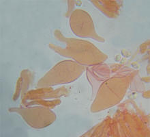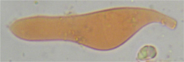 Spores: 8-10x4.2-5.6µ Lamellar trama vinescent in Melzer's |