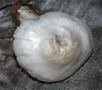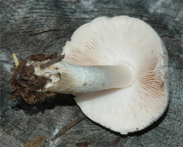 This is one of the frequently encountered, lignicolous, white Pluteus