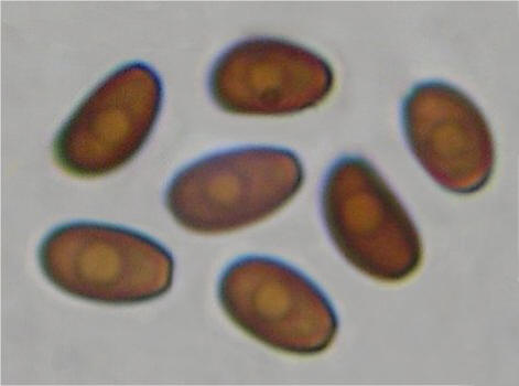 Spores: (7.8) 8-9 x 4.3-5µ