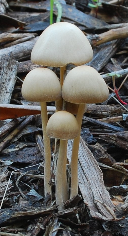 | A close relative and part of the cluster around Psathyrella gracilis, -- the literature separates this species on the basis of slightly longer spores, more rounded cap, and rounded cystidia necks and macroscopically more yellowish appearance. The species in this cluster demonstrate very broad geographical distribution. | ||