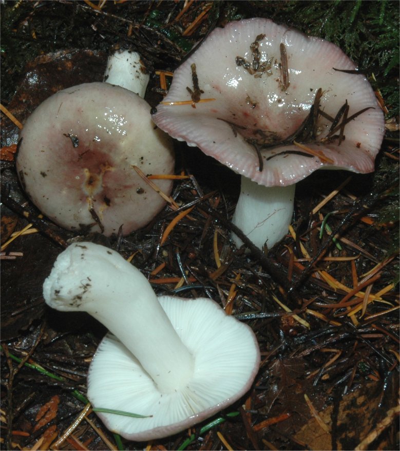 reddish colors, in conjunction to a white stipe (without pinkish flush),