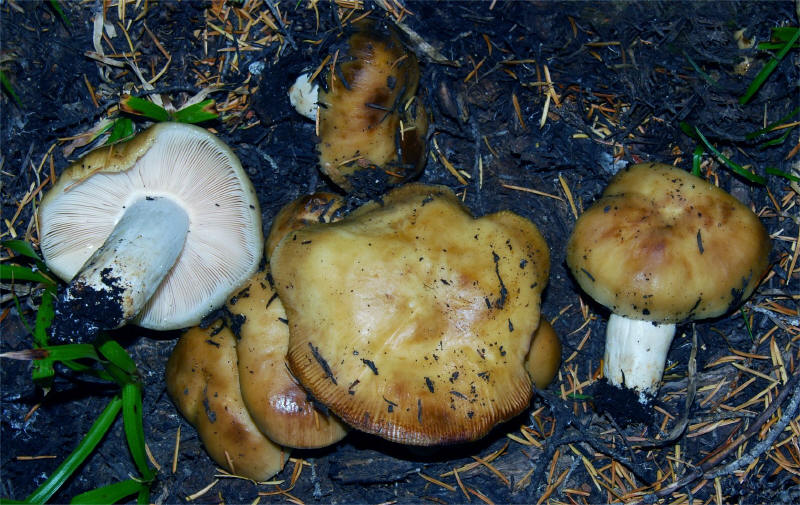 | This species is abundant in the Northern Coastal forests of California and the PNW where it tends to fruit earlier in the season. As the name suggests it has a strong fragrance of almonds. It frequently is misidentified as Russula laurocerasi, which can be separated on account of its uniquely shaped spores. |