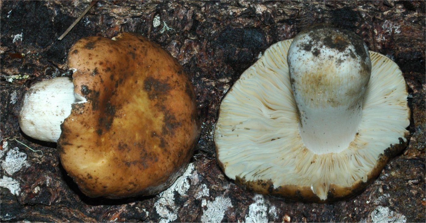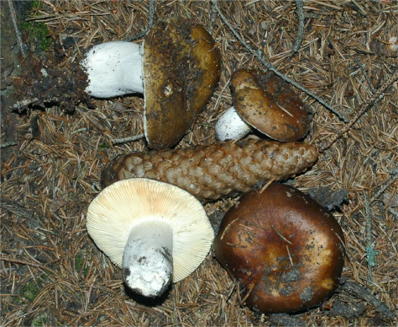 This is one of the common mild Russula species from the conifer forests. I have seen in both Europe and North America. When in doubt, the spiky spores help quite well to id this species. This one has a fairly firm texture and is one of the choice edible Russulas.