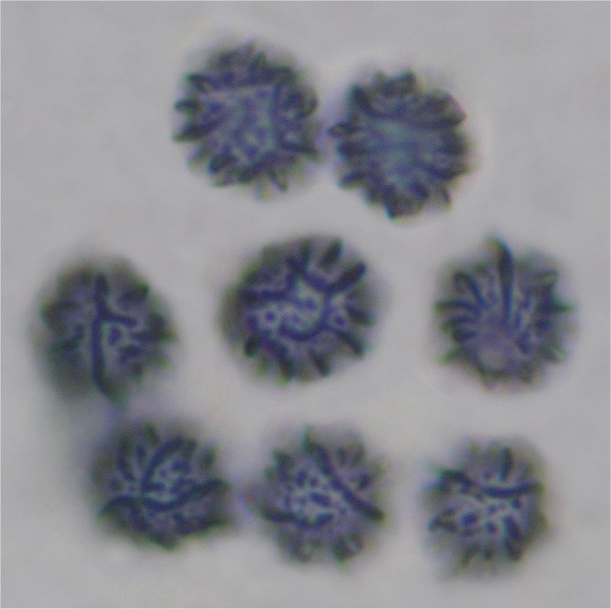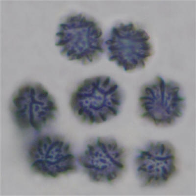 | This species is very similar to Russula fragrantissima and has the same almond fragrance. I couldn't tell them apart if it weren't for the spore differences. The distinctly ornamented spores with protruding wings are the most interesting part of this species. This species is fairly common in Eastern North America and while listed from California, I've never collected it there. | ||