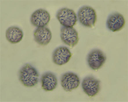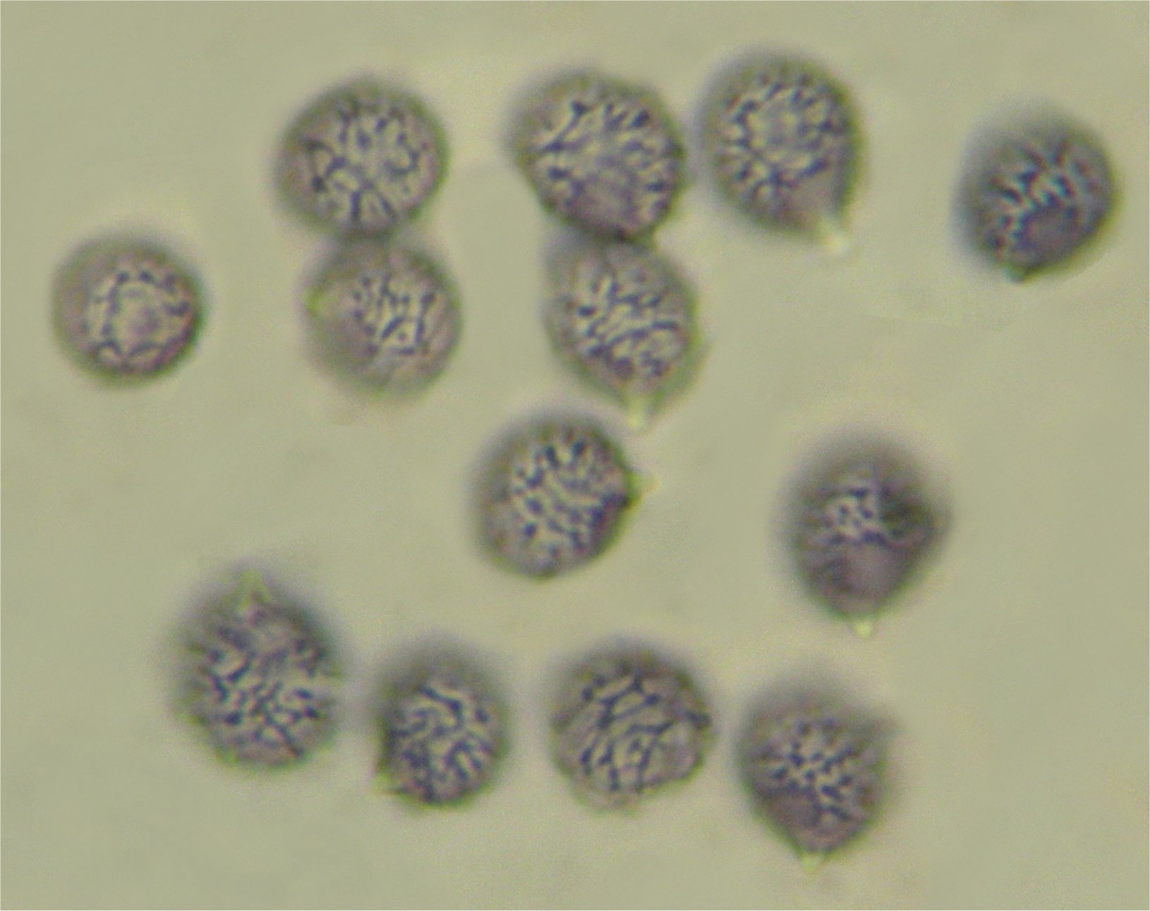Spores: 7-8.5 x 6.4-7µ fine ornamentation of well defined ridges, often