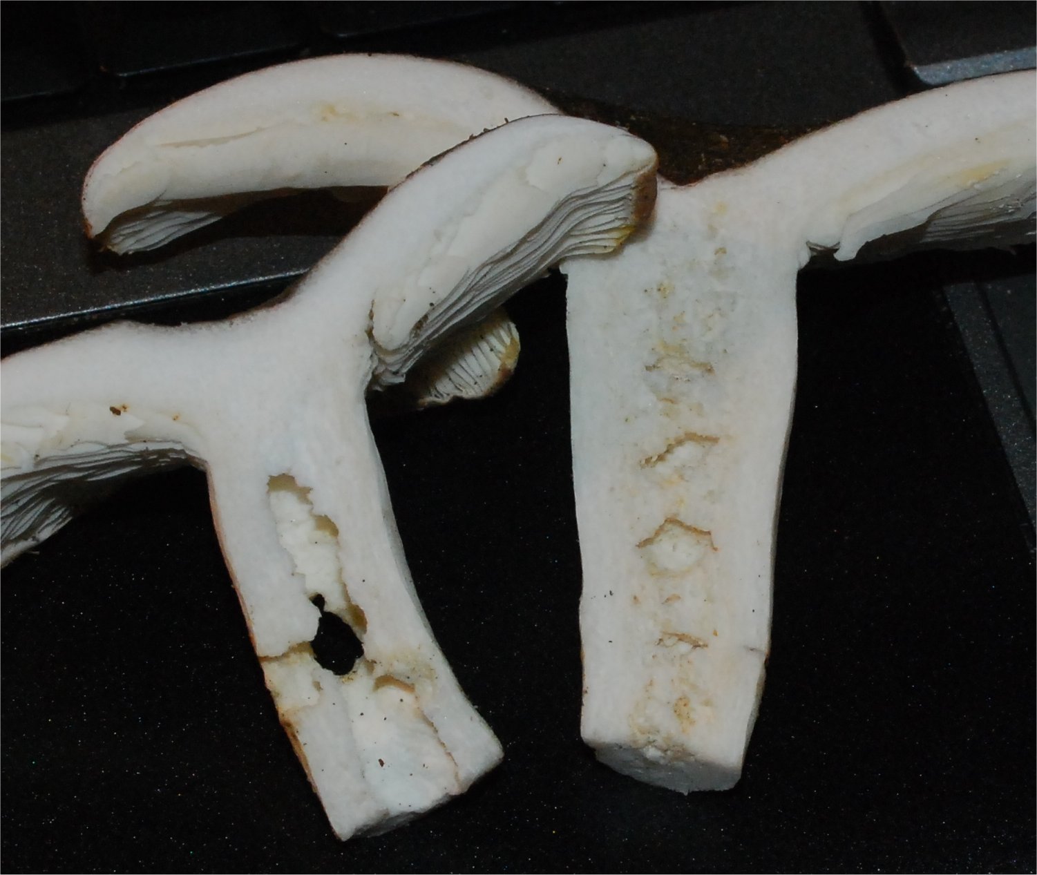 This is one of the classic Russulas from Eastern North America.  The epithet variata is quite fitting as it is rather variable with a strongly mottled cap. It is not as similar to Russula cyanoxantha as many sources claim, but in my opinion it can be confused with Russula grisea, which at the same time can easily be told apart by its yellowish spore print. Russula variata has a mildly acrid taste, which is not hot. The frequently forking gills are one of the main distinguishing characteristics of this species.