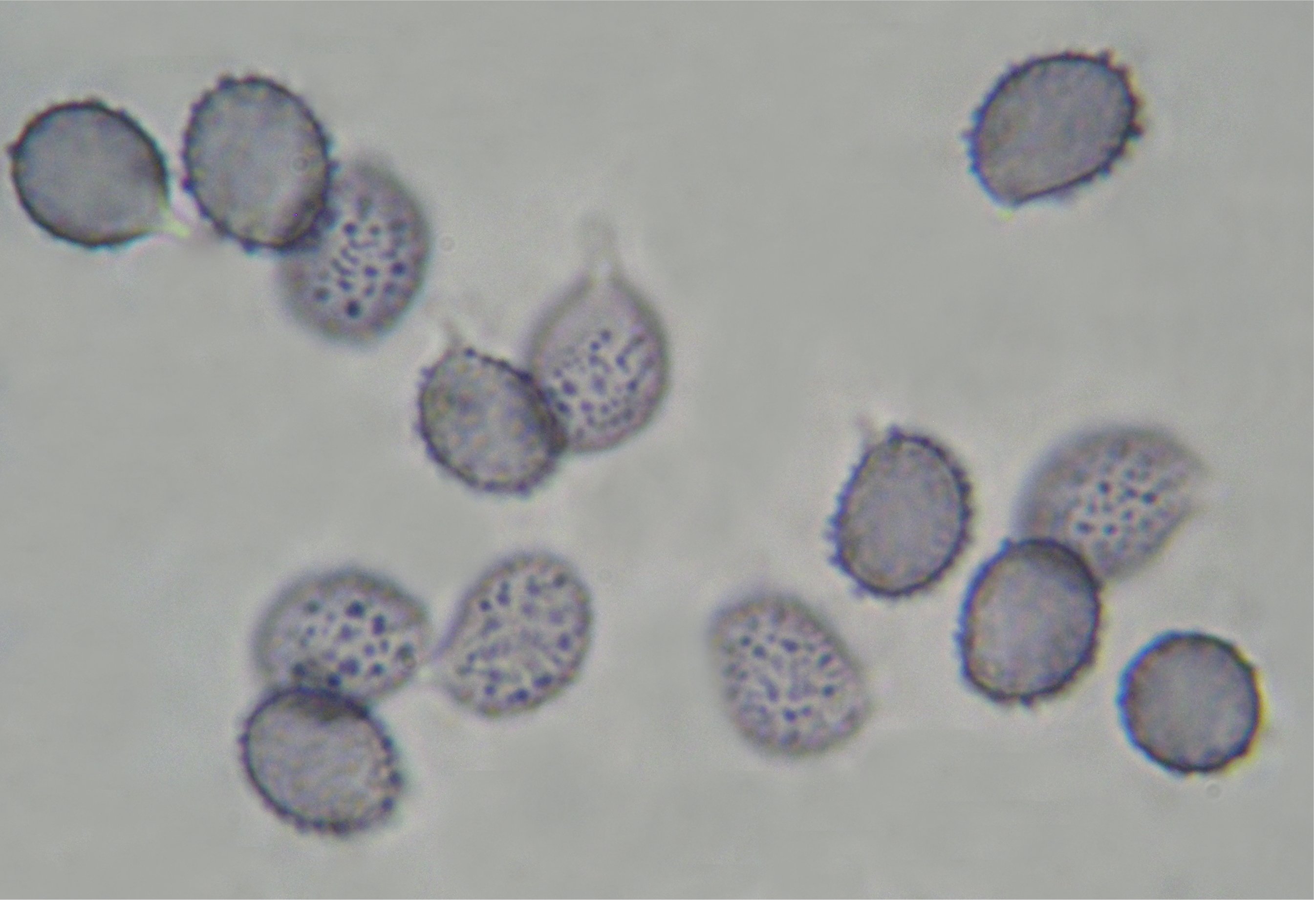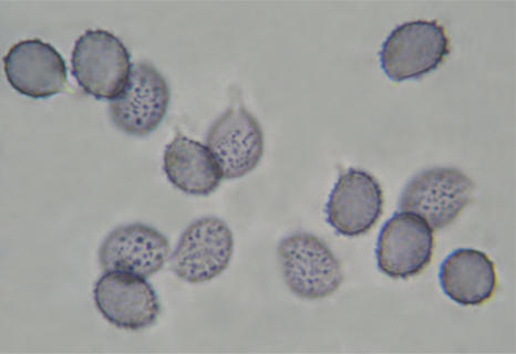 Spores: 8-10 x 6-7.3µ Almost entirely isolated warts.